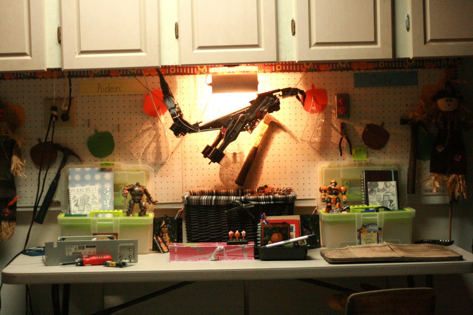 This is like a kids dream...a place of their own to take stuff apart. It's so rare that parents actually give their kids a spot like this. You rock mama!